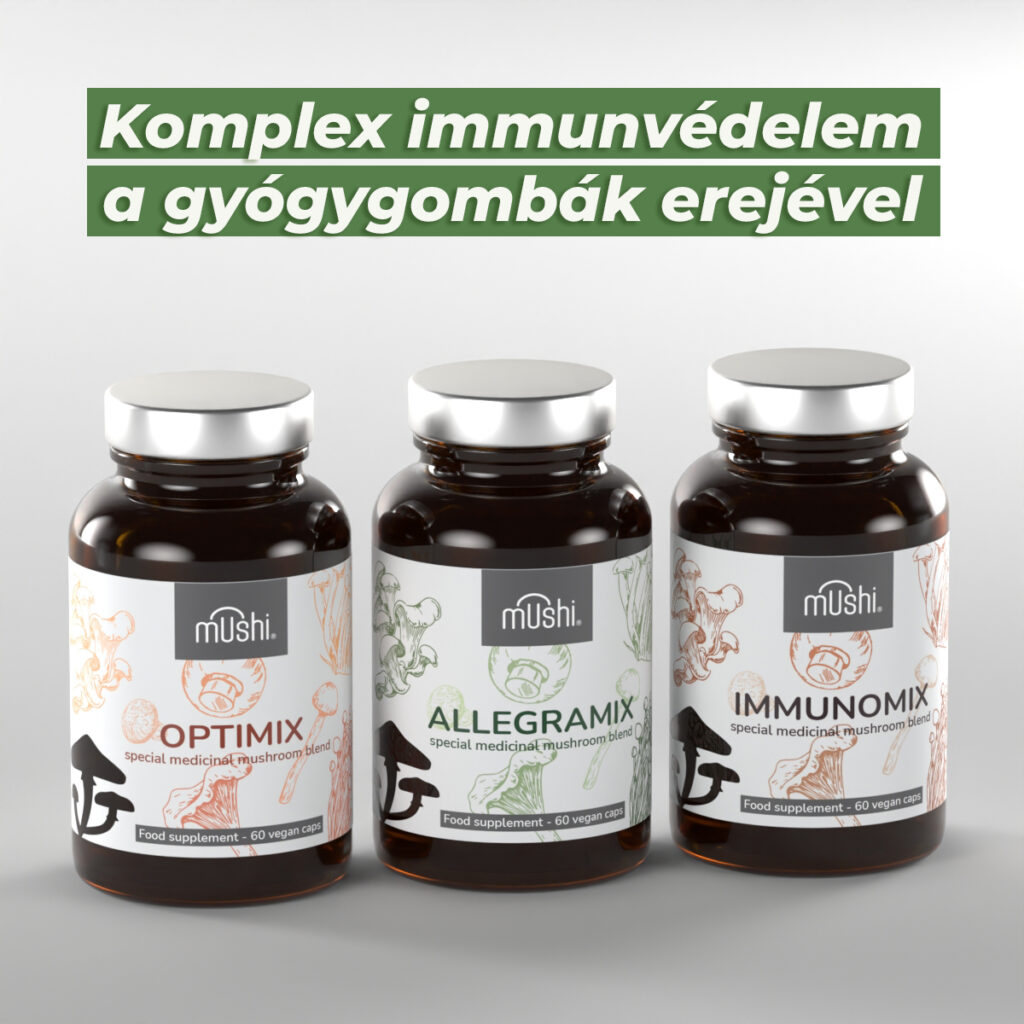 A termékcsomag három prémium, speciálisan összeállított gyógygomba-keveréket tartalmaz. Az Optimix, az Allegramix és az Immunomix olyan egyedi formulák, amelyeket kizárólag ilyen összetételben a Mushi® fejleszt és forgalmaz. Mindhárom keverék a gyógygombák természetes erejét ötvözi a mai életmód igényeivel, 100% vegán kapszulákban, prémium minőségben. Ez az exkluzív csomag a természetes immunvédelem és vitalitás támogatására készült